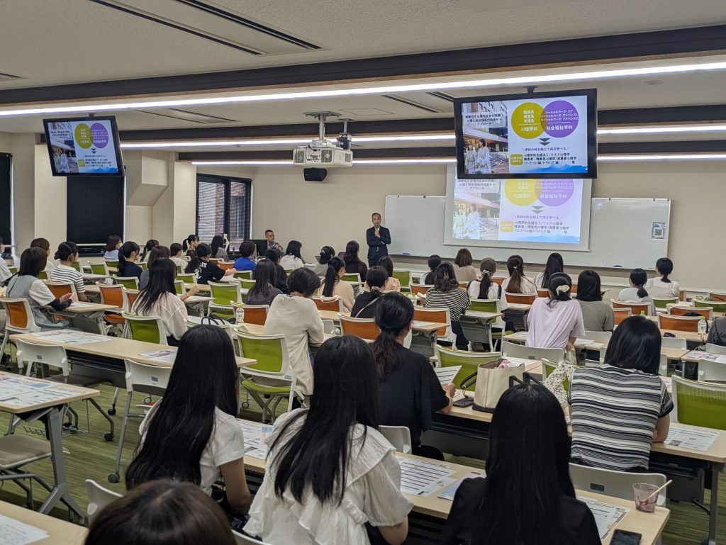 9月21日 オープンキャンパス開催! お知らせ 2025.10.02 例年以上に多くの高校生と保護者の方々に参加をいただきました。社会福祉学科の教育カリキュラムの特色、模擬講義、教員紹介、入試ワンポイント講座などのプログラムを熱心に聞き取っていただきました。秋以降にスタートする入試の情報を得るため個別相談もたくさんの方が利用されていました。卒業生8人、在校生5人が学科説明会のサポート参加し、大学入試や大学生活についての質問などの対応をしてくれました。 受験生の皆さん、応援しています!