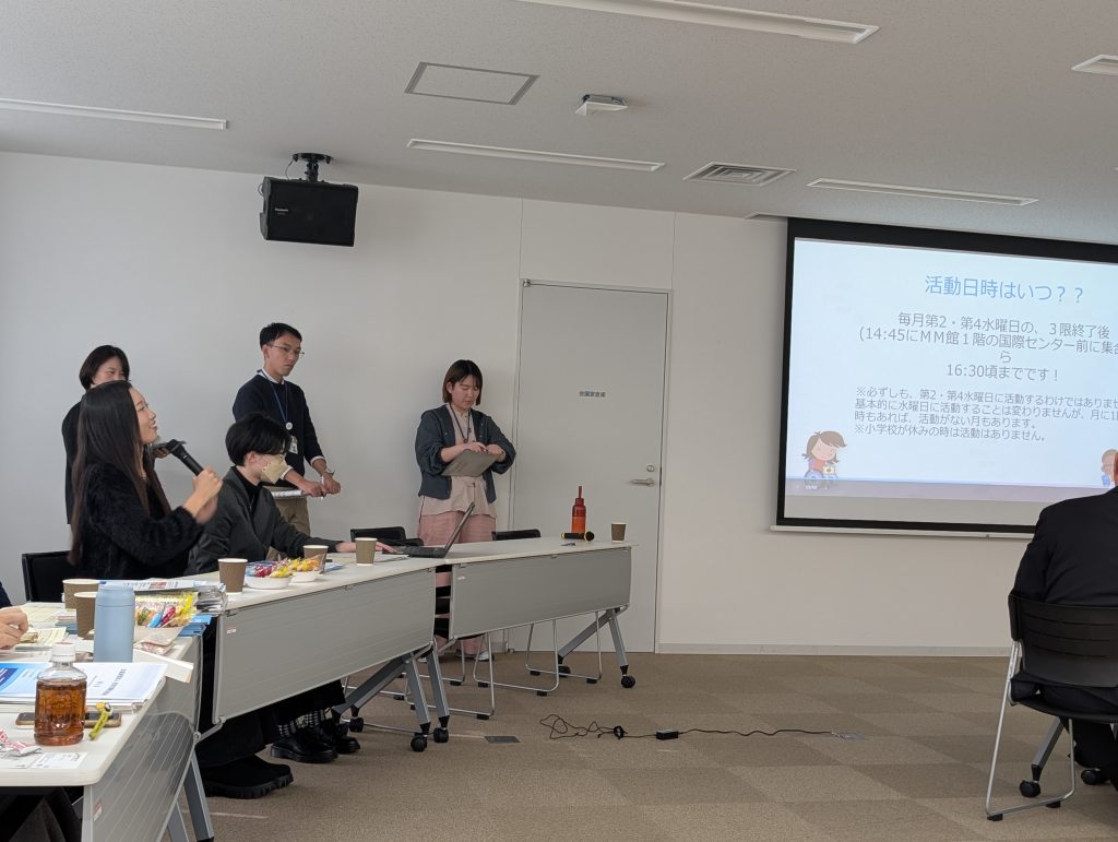 そのカフェに3年生の森戸さんがゲストで参加し、「学生・地域団体とつながる」というテーマで、「ふでばこ」の活動について発表をしました!日本語文学科4年生の学生とともに参加し、グループディスカッションでは、市の図書館職員から、「(市民に)多文化の理解を深めるために必要だと思う図書を教えてほしい」という質問に、「ジェスチャーが文化によって意味が違う等、日常に活かせる書籍があればよいと思う」等、具体的な提案がされていました。