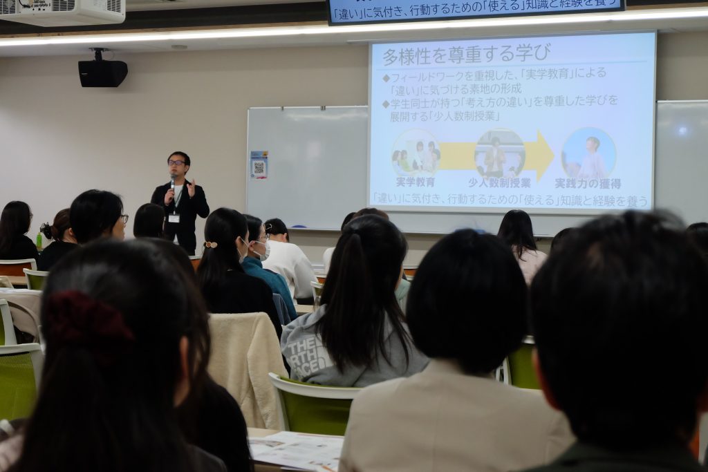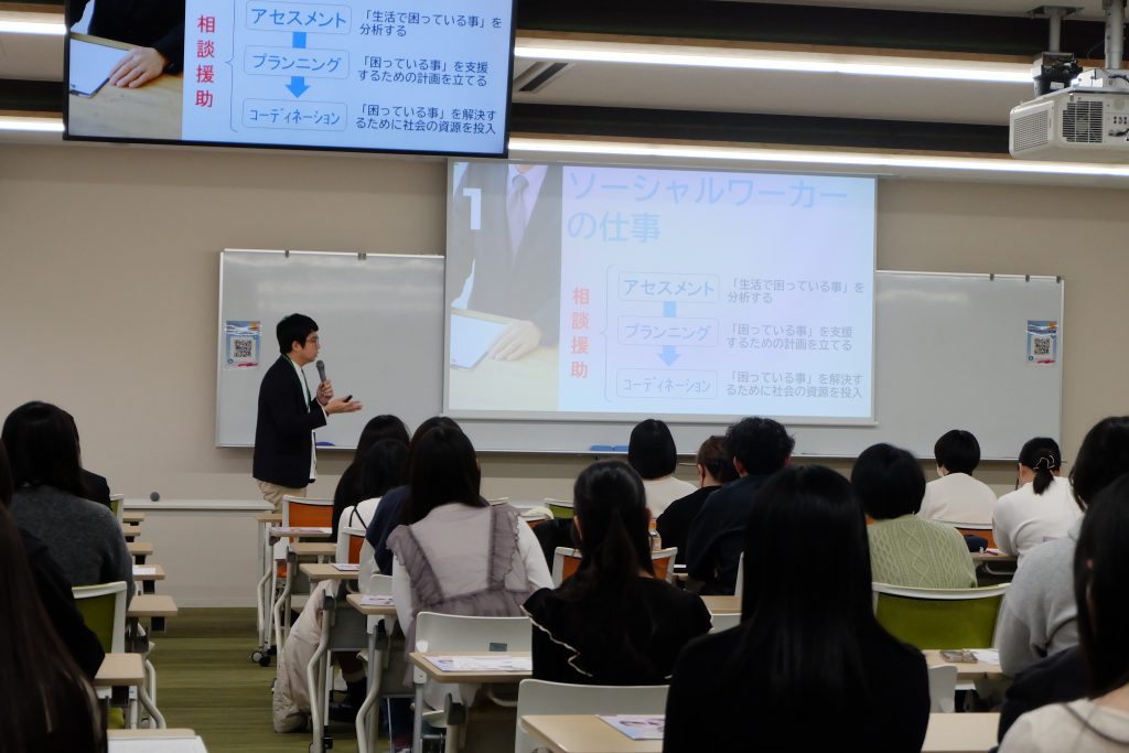 3月22日 オープンキャンパスを開催!! お知らせ 2026.03.26 2027年度以降の入学者向けのオープンキャンパスが開催されました。第1部・第2部で、総勢80名を超える高校生や父母等が社会福祉学科のオープンキャンパスに足を運んでくださいました。卒業生のスピーチや模擬授業などを興味深く頷きながら、高校生の中にはメモを取りながら熱心に聞いてくださっている方もいました。