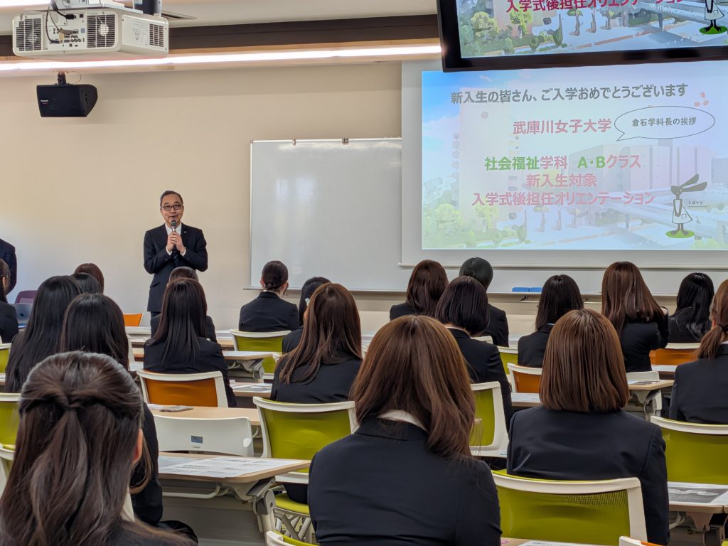 4月3日 社会福祉学科に74名の学生が入学!! お知らせ 2026.04.06 入学式が公江記念講堂で執り行われました。式後は学科に分かれてのオリエンテーションが実施されました。学生の多くが「入学前準備教育」に参加していたため、和やかな雰囲気の中、クラス幹事の選出などが行われました。天気にも恵まれ、満開の桜の下、武庫川女子大学の学生として新たな第一歩を踏み出しました!!